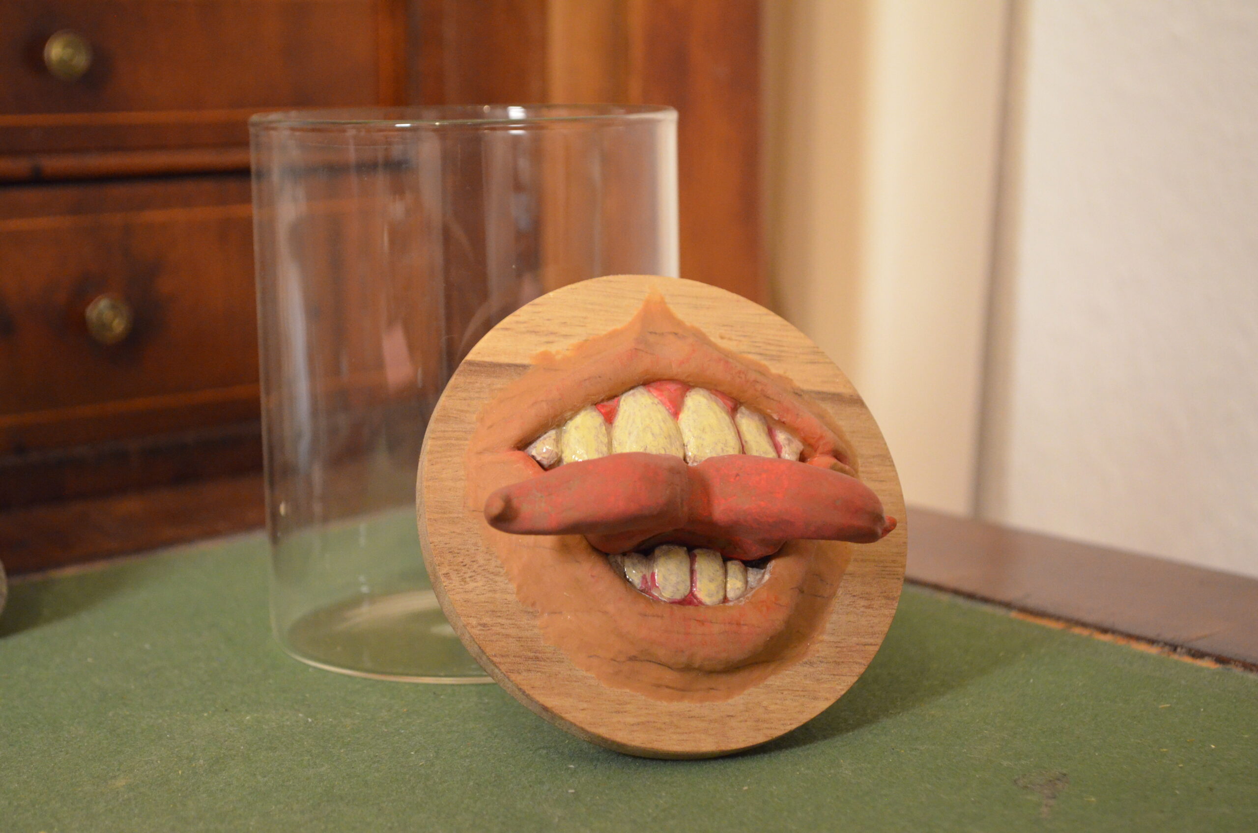 600 ml Glas Dose mit Holzdeckel. Modelliert mit Polymerton. Handgemachtes Unikat.